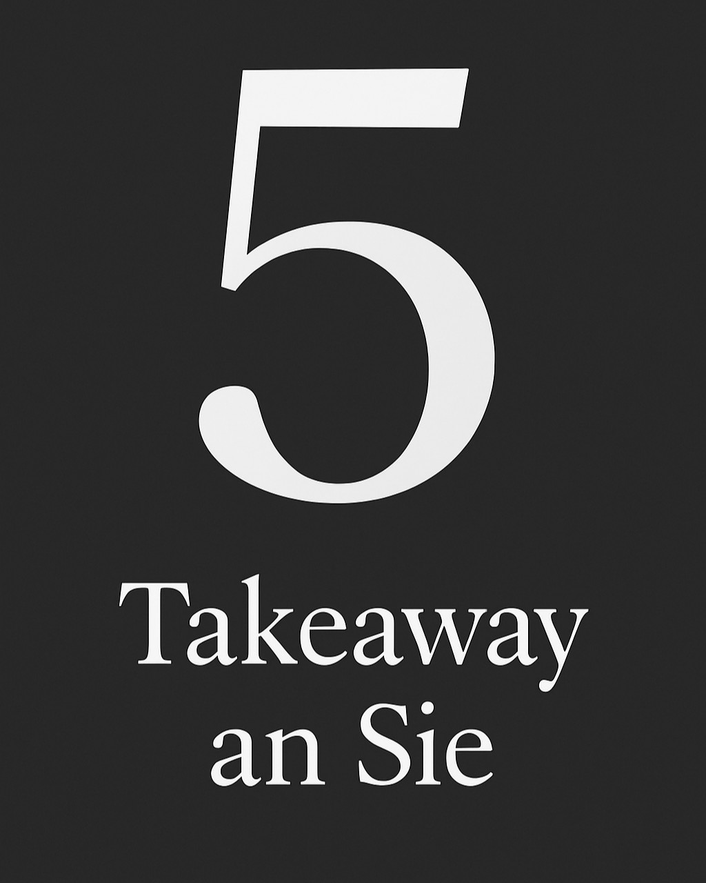 Nehmen Sie sich ein paar Minuten Zeit und beantworten Sie für sich und Ihr Unternehmen die fünf nachfolgenden Fragen. Sie erhalten Sie ein präzises Bild davon, wo Ihr Unternehmen heute wirklich steht. Und falls Sie Ihre Antworten schärfen oder Ihre Customer-First-Strategie weiterentwickeln möchten, offeriere ich Ihnen gerne ein unverbindliches Sparring-Gespräch, in dem wir gemeinsam Potenziale erkennen und erste konkrete Schritte definieren.
